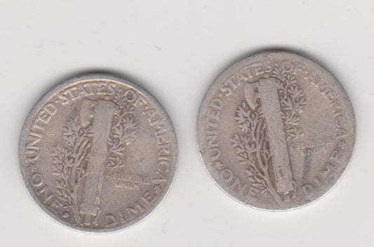 90% silver, United States of America 10 cent coins (2 dimes), 1925 and 1931