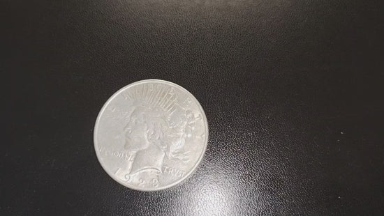 Type and country: U.S. Peace dollar, regular circulation issue, with Liberty on the obverse and a perched eagle with rays and the word “PEACE” on the reverse.